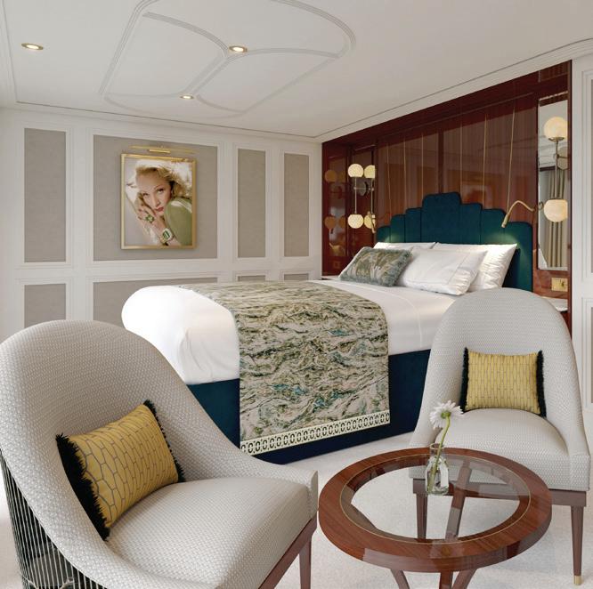Sailing through the waterways of Central Europe, the S.S. Marlene is an homage to German-born actress and singer Marlene Dietrich. Launching in 2027, the ship is sure to impress travellers with Dietrich’s distinctive flair, drawing inspiration from her time as an old Hollywood film star and, later, a cabaret artist.