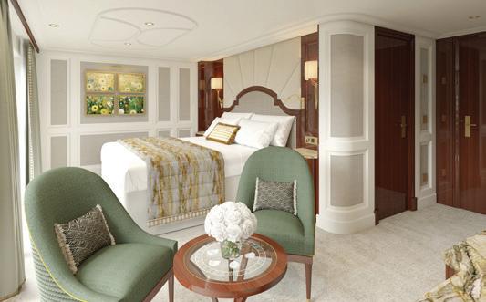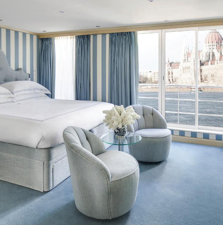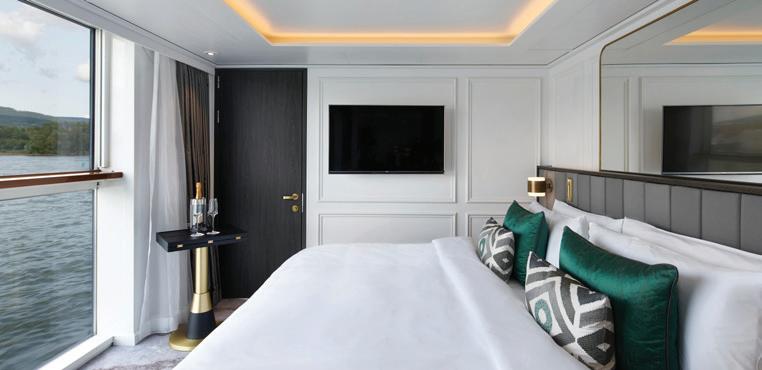 Like her sister ship, the S.S. Elisabeth , the S.S. Victoria joins our European fl eet with an ambiance of contemporary luxury. This ship brings the largest suites on the rivers of Europe to our fl eet, boasting two Royal Suites that off er an incredible 506 square feet each. Guests can even reserve the adjoining standard Suite next door to create a 759 square foot suite with two bedrooms connected b y a separate living room. Note: Stateroom