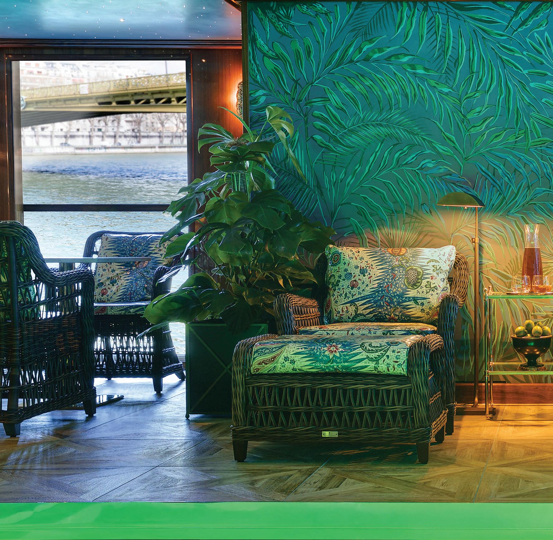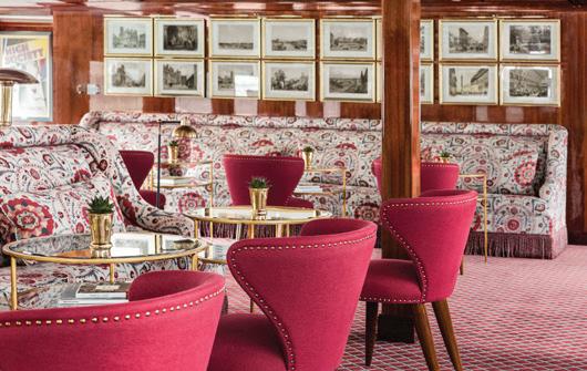 S.S. Joie de Vivre brings the “joy of living” to the rivers of France. Step aboard your floating pied-à-terre in France, featuring handcrafted furniture and fine antiques, original artwork, and signature accents inspired by 20th-century Parisian design blended seamlessly with modern conveniences. Its attention to detail is unmatched, with fabrics and upholste ry from the Tollman’s historical archives, as well as some of the most esteemed design houses in Europe.