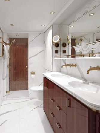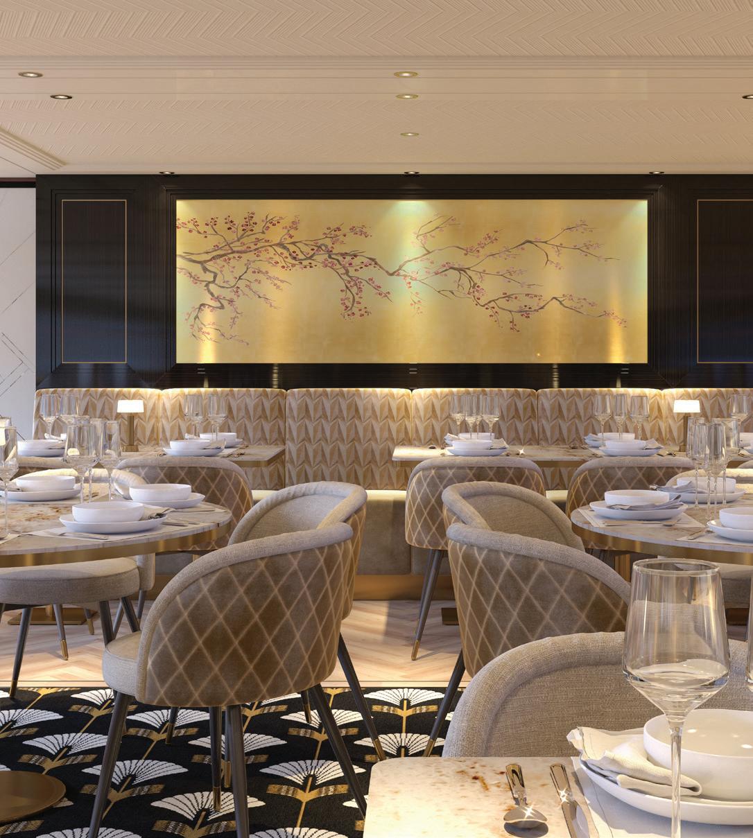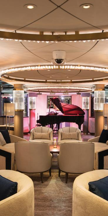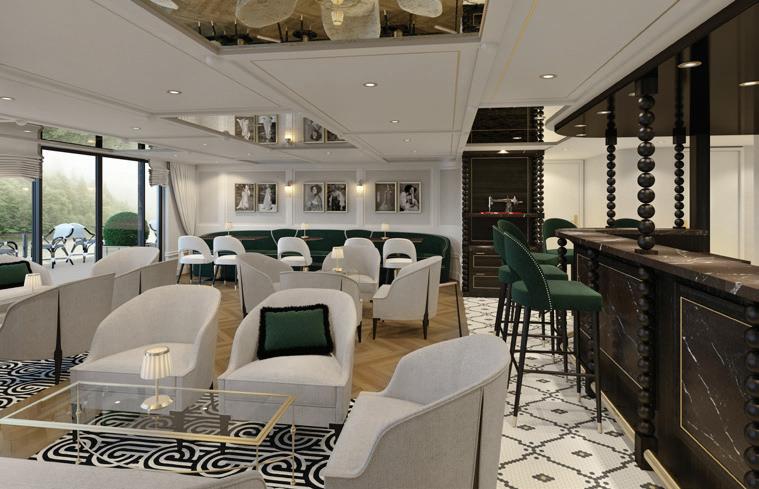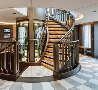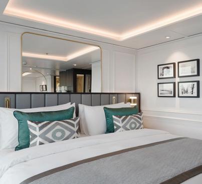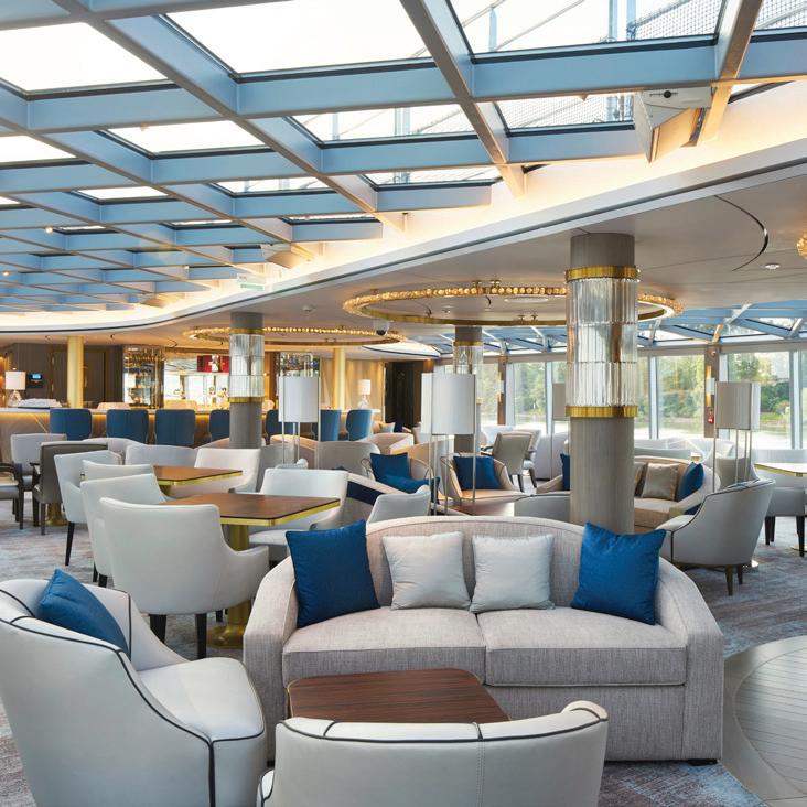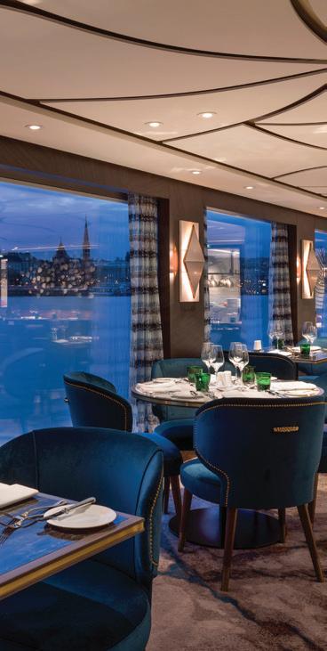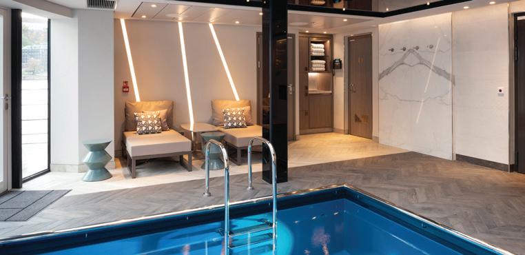 Joining the Uniworld fl eet in 2025, S.S. Elisabeth exudes contemporary style with luxe velvet and marble accents like her sister ship, S.S. Victoria. Relax amongst the soothing tones of the lounge, enjoy regionally inspired bites in one of three dining venues—including a rooftop bar—or take a dip in the onboard pool. Tiny Noticeabl e Touches™, such as the original artwork lining the walls and fresh fl owers, add Uniworld’s boutique fl air throughout the ship.