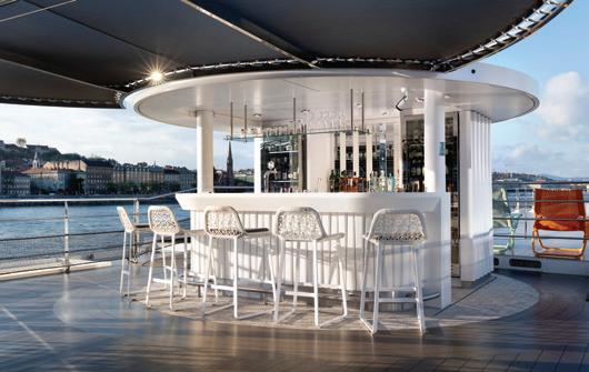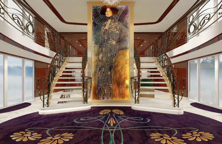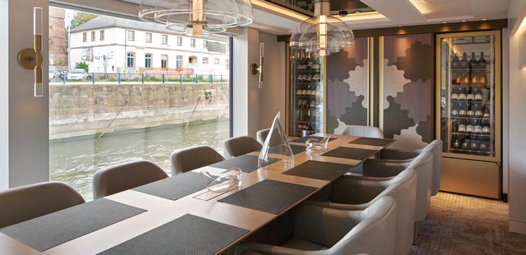 This jewel of a ship graces the waters of the Danube River, boasting splashes of nautical hues, a stunning lobby featuring elegant mirrors, marble floors, a white Murano chandelier and a grand staircase made of nickel and iron. The design inspirations include 14th-century Chinese porcelain and Dutch Delftware. S.S. Beatrice creates enhanced dining and culinary experiences by offering four unique venues, all inspired by famous Austrian composers.