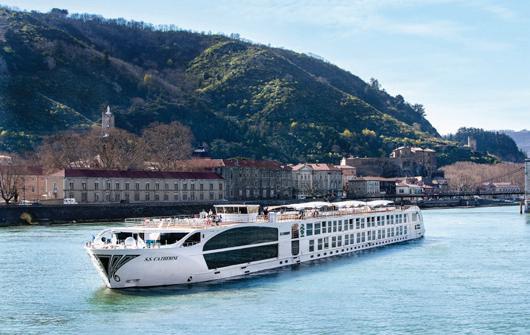 This splendidly elegant ship cruises along the Danube River boasting ultra-luxurious accommodations fit for Empress Maria Theresa herself. As a tribute to the only female ruler in the House of Habsburg, a 10-foot-tall, specially commissioned portrait namesake hangs in the two-story foyer. Travel like royalty surrounded by opule nt silk-clad walls, a Murano glass chandelier in the lobby, eye-catching patterns in every room, hand-painted coronets, and a mosaic-til ed enclosed swimming pool.