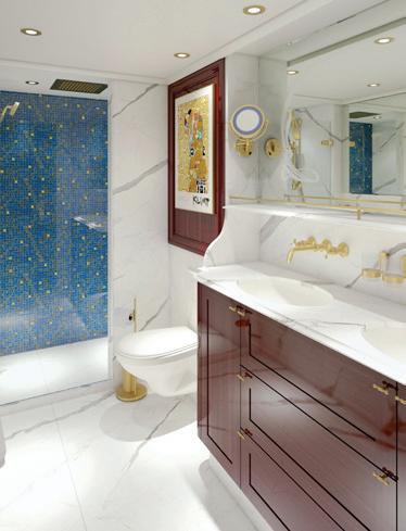 Sailing the Danube River, the next member of our Super Ship fleet will be inspired by master Viennese painter Gustav Klimt. In his honor, we’re naming the vessel after his beloved muse, Emilie Flöge. When she debuts in 2026, the S.S. Emilie will bring elements of Klimt’s signature style to our guests, with dramatic hues, Art Nouveau elements, and stunning pops of gold. Guests who book a Grand Suite and the adjoining Deluxe French Balcony next door can see their stateroom transformed into an incredibly spacious 2-bedroom suite.