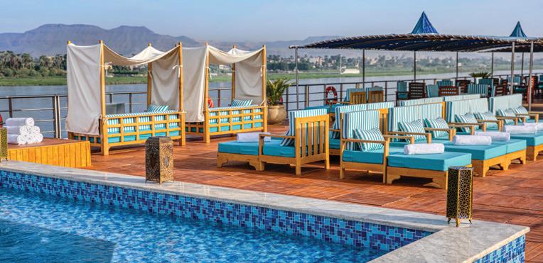 The River Tosca perfectly captures the warmth and style of Egypt, taking guests on a culturally enriching adventure down the Nile in absolute luxury. This all-suite ship is elegantly designed with wood finishes and cozy public spaces.