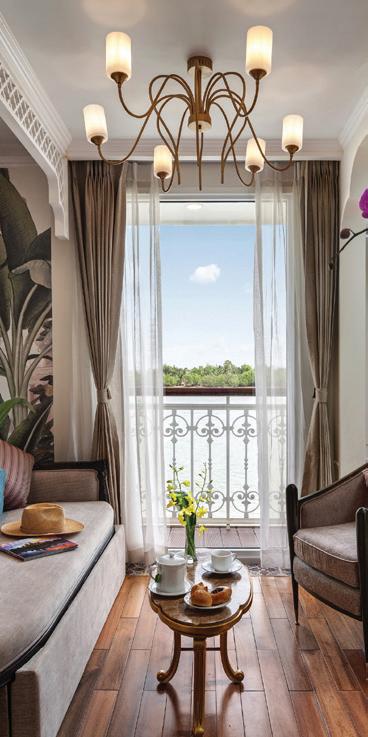This incredibly spacious, multistory ship will have you charmed by your surroundings from the moment you step onboard. The all-suite Mekong Jewel is made of sustainable and eco-friendly materials and features artwork inspired by the landscapes of Vietnam and Cambodia, beautiful indoor and outdoor lounges, a pool, two dining venues, and a wellness center complete with a nail and hair bar. An experience like no other awaits you on the newest ship to grace the Mekong.