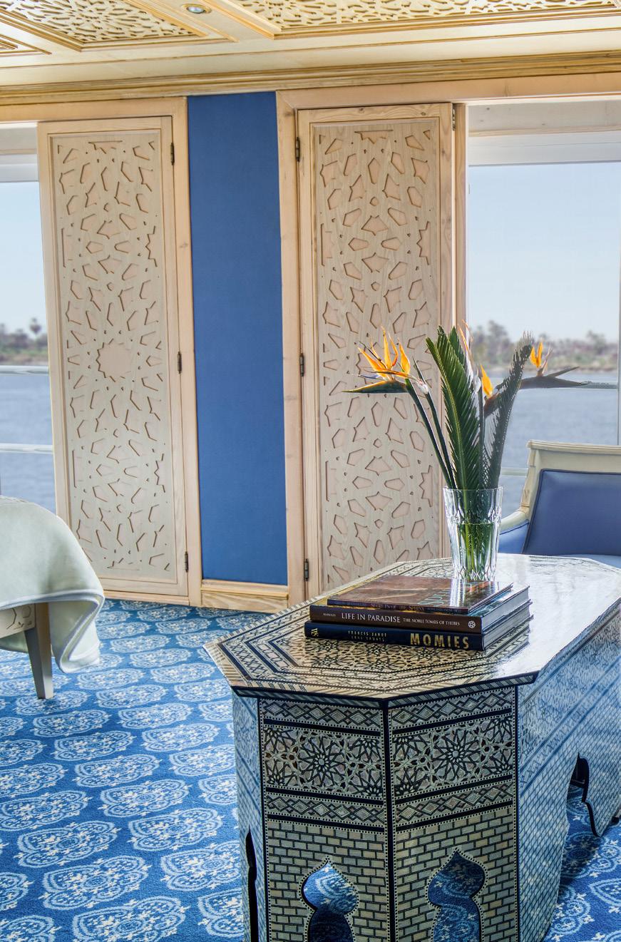 • We scoured the bazaars of Egypt and teamed up with local artisans to source the bespoke pieces that give our ships a unique degree of authenticity and elegance, such as fine Egyptian cotton, marble and hand-carved blonde wood.