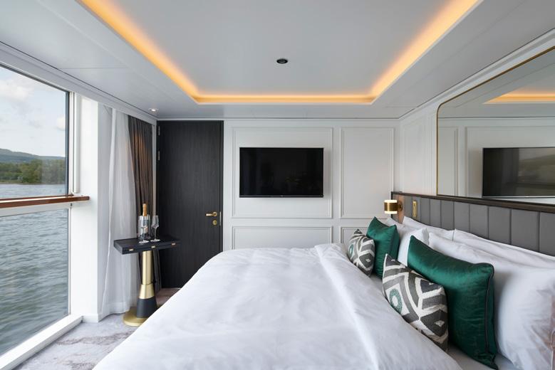 Like her sister ship, the S.S. Elisabeth , the S.S. Victoria joins our European fleet with an ambiance of contemporary luxury. This ship brings the largest suites on the rivers of Europe to our fleet, boasting two Royal Suites that offer an incredible 506 square feet each. Guests can even reserve the adjoining standard Suite next door to create a 759 square foot suite with two bedrooms connected by a separate living room