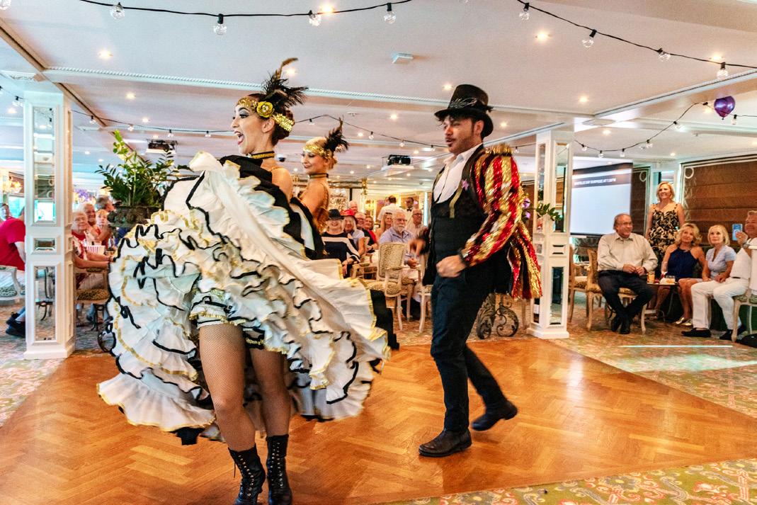 By day, Club L’Esprit is an onboard wellness center with a spa, pool, smoothie bar, and fitness equipment. By night, the pool disappears, a dance floor takes its place, and the whole room transforms into Claude’s, a glitzy bar and entertainment venue.