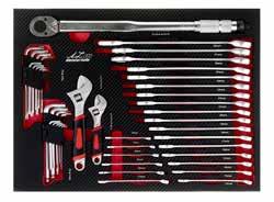• 28 db-os 1/2"-os gépi dugókulcsfej készlet szerszámtálcával