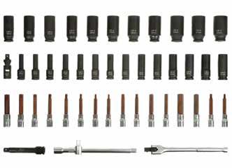 • Fejméretek: 36, 38, 41, 46, 50, 54, 55, 58, 60, 63, 65, 67, 70, 71, 75, 77, 80 mm, toldó: 200, 400 mm, hajtószár és adapter, fém dobozban