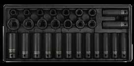 • Dugókulcs méretek: 10, 11, 12, 13, 14, 15, 16, 17, 18, 19, 21, 22, 24, 27, 30, 32 mm-es (normál és hosszú), 125 mm hosszabbító, csuklós közbetét dugókulcshoz
