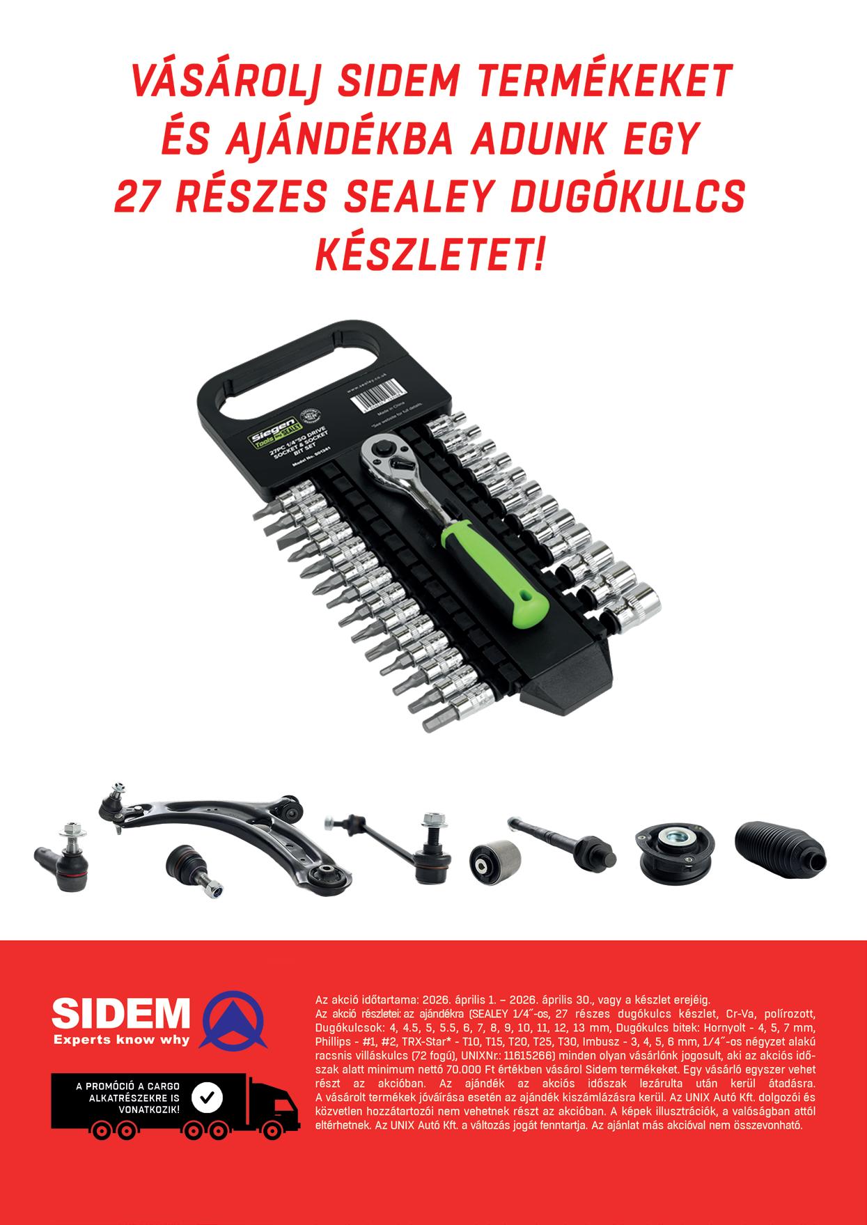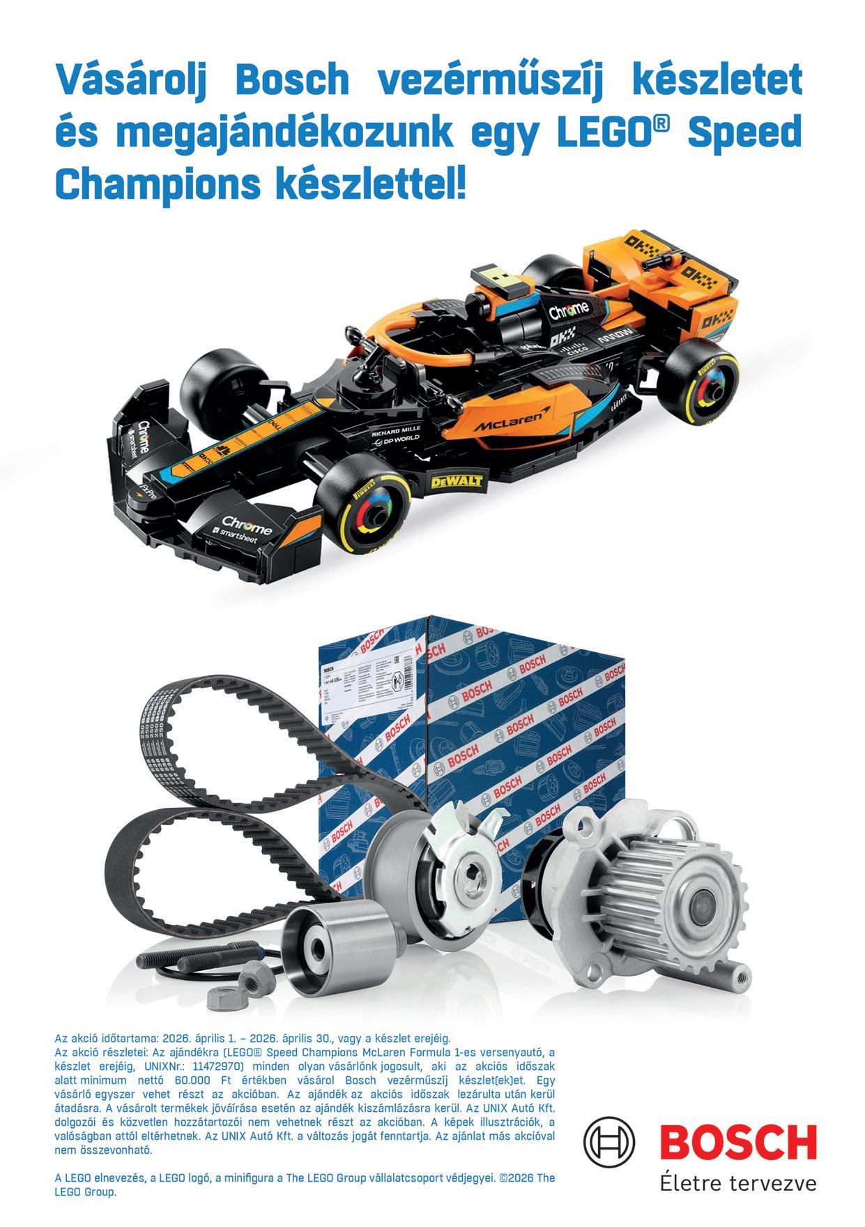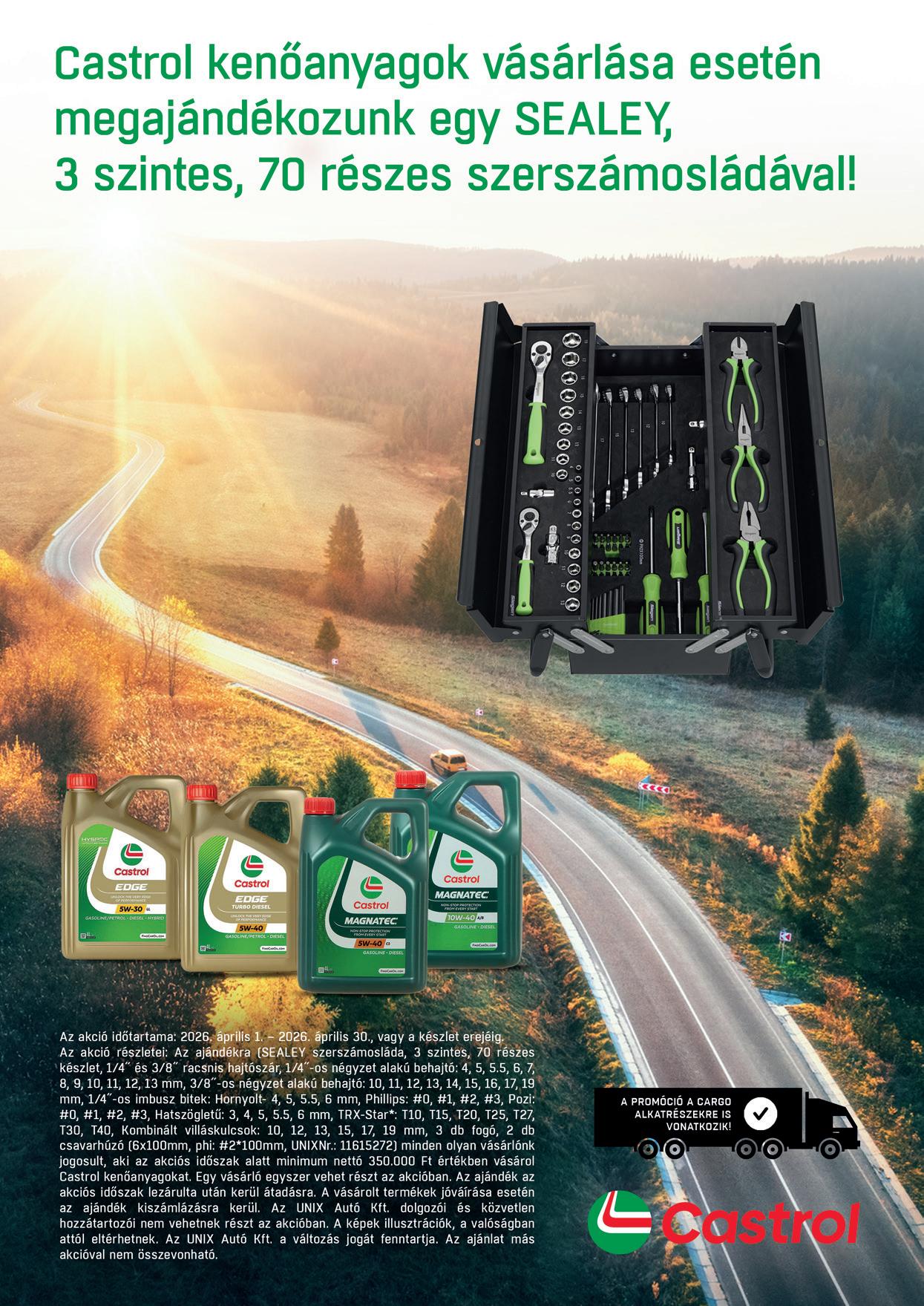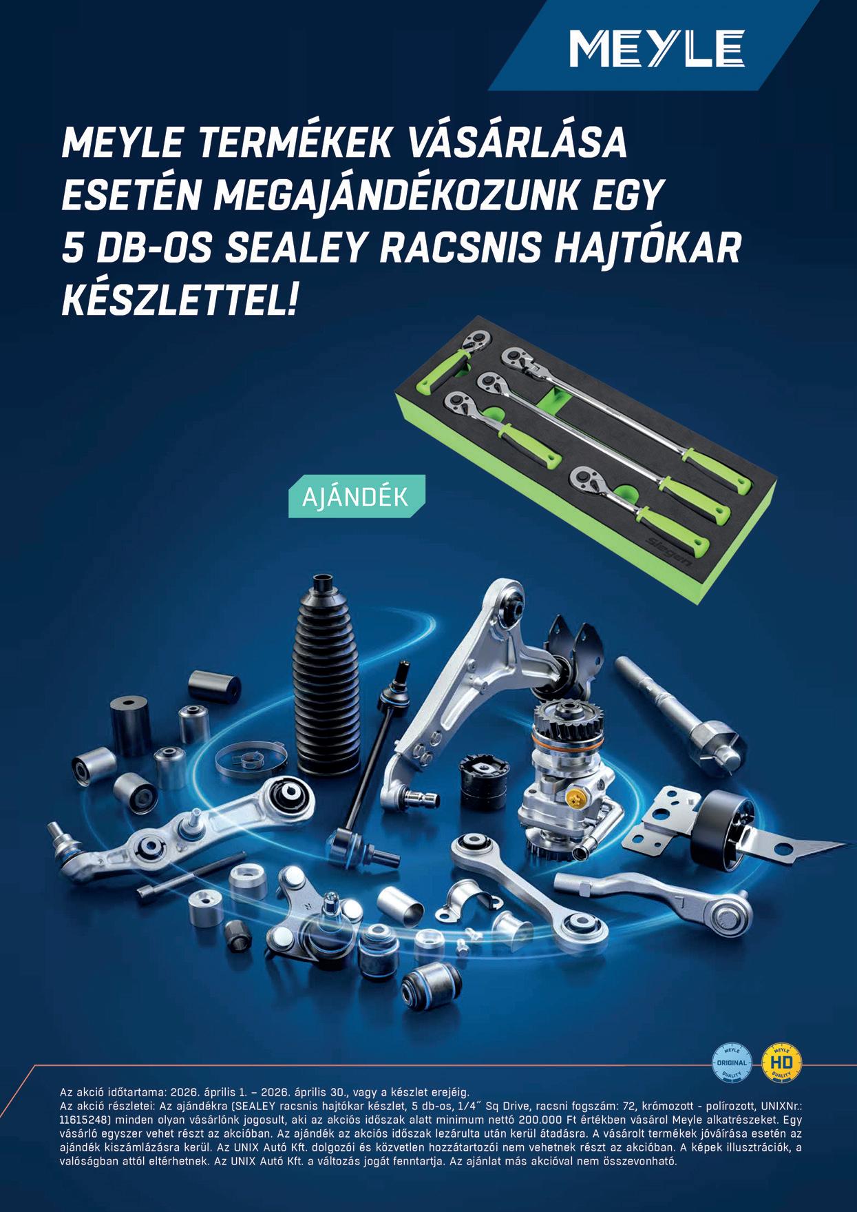 Az akció időtartama: 2026. március 1. - 2026. április 30. Az akció részletei: az ajándékra (10.000 Ft értékű MOL üzemanyagkártya) minden olyan vásárlónk* jogosult, aki 2025. március 1. és április 30. között legalább 1.000 Ft értékben vásárolt A.Z. Meisterteile termékeket, és 2026. március 1. és április 30. között legalább 100.000 Ft értékű A.Z Meisterteile forgalomnövekedést teljesít, de minimum megduplázza 2025. március 1. és április 30. közötti A.Z. Meisterteile vásárlásainak értékét. Az akcióban nincs felső határ, így minden további 100.000 Ft értékű A.Z. Meisterteile forgalomnövekedés után újabb 10.000 Ft értékű MOL üzemanyagkártya jár. Az üzemanyagkártyák az akciós időszak lezárulta után kerülnek átadásra. Az ajándék üzemanyag¬kártya átvétele után az akcióban rendelt A.Z. Meisterteile termékek nem jóváírhatóak. Az ajánlat más akcióval nem vonható össze. *Az akcióban kizárólag vállalatok, szervizek és viszonteladók vehetnek részt. Az Unix Autó Kft. dolgozói és közvetlen hozzátartozói nem vehet¬nek részt az akcióban. Az Unix Autó Kft. a változás jogát fenntartja.