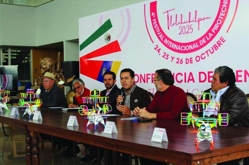 on la participación de pirotécnicos de Ecuador, Paraguay, Argentina y México, del 24 al 26 de octubre, San Mateo Tlalchichilpan ubicado en el municipio de Almoloya de Juárez, se prepara para recibir la 4ª edición del Festival InternacionaldelaPirotecnia2025,evento quetienecomoobjetivo:impulsareltalento local, rescatar la identidad cultural y consolidar el evento como un referente internacional.