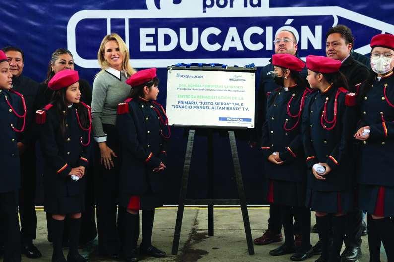 La presidenta municipal, Romina Contreras, entregó los trabajos de rehabilitación de las primarias "Jus to Sierra" e "Ignacio Ma nuel Altamirano" -turnos matutino y vespertino-, en Zacamulpa,paramejorarlas condicionesyelaprendizaje demás de 700alumnos.