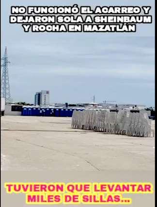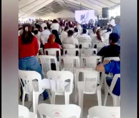 tan sólo unos días de cumplirse un año de la presente administración encabezada por la presidenta Claudia Sheinbaum,"los Noticieristas",del estado de Sinaloa, documentaron que,el pasado fin de semana les sobraron sillas a los organizadores, con imágenes y videos se evidenció la ausencia de asistentes convocados al evento realizado en Mazatlán, los argumentos para que la gente no asistiera como se esperaba, en principio de cuentas fue el temor de salir de sus casas por la incontenible violencia; por otra parte, medios de comunicación locales informaron que a pesar de las amenazas a militantes morenistas,y a Servidores de la Nación adscritos a laSecretariadel Bienestar,estos noasistieron y mucho menos se dieron a la tarea de invitar y llevar a más gente,pues la mayoría de los camiones iban vacíos, cuatro vehículos por coordinación.