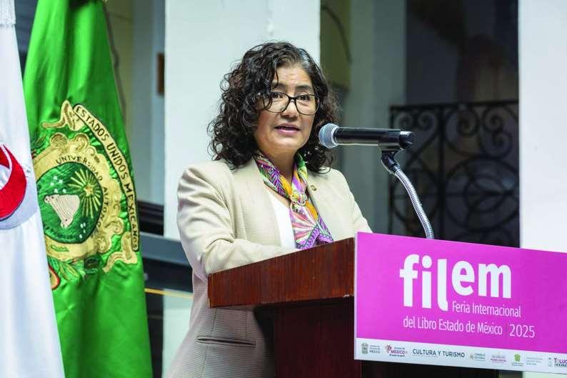 Ante el representante de la gobernadora del Estado de México, Delfina Gómez Álvarez, el secretarioGeneraldeGobierno,HoracioDuarte Olivares, la rectora de la UAEMéx, Martha Patricia Zarza Delgado, detalló que la FILEM 2025 es un espacio de innovación cultural que,