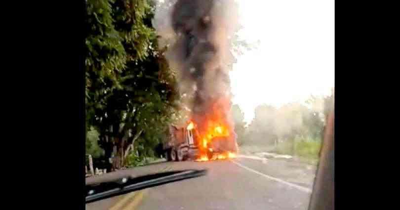 En la carreteraVillahermosa-Luis Gil Pérez, a un camión repartidor de agua purificada de la Pepsi le prendieron fuego,y cerca en esa misma vialidad fue quemado un automóvil.
