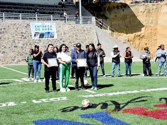 "Hoy entregamos un deportivo digno,accesible y completo,pensando en nuestras niñas, niños, jóvenes y adultos mayores. San Juan Coxtocán y toda la región de los volcanes