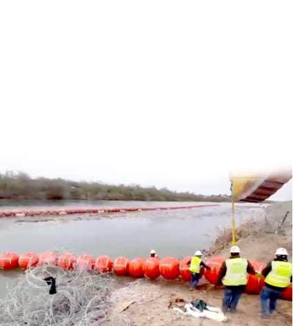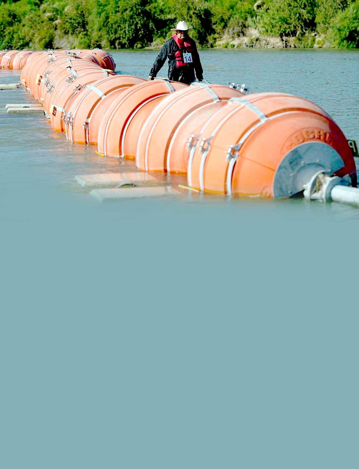 Las primeras boyas fueron colocadas en el verano de 2023, cubriendo más de 4.5 kilómetros al sur de Eagle Pass,a la altura del rancho La Nogalera. Vale destacar que el río Bravo,que sirve como límite natural entre México y Estados Unidos, atraviesa buena parte del norte del país y es un punto clave en la frontera de Coahuila con Texas. Las medidas unilaterales tomadas en este cauce afectan directamente a la región, pues no sólo impactan la movilidad y la seguridad,sino también las relaciones binacionales en zonas como Piedras Negras,Acuña y Guerrero,donde el intercambio económico y humano conTexas es constante. Sobre este controvertido proyecto,el regreso de Trump al esce-