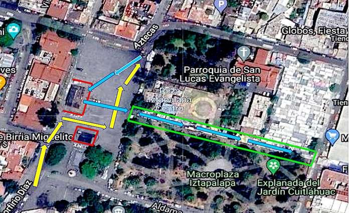 reforzaránlavigilanciayrealizaránloscortes a la circulación,a fin de garantizar la movilidad tanto vehicular como peatonal a lo largo del recorrido, el cual tendrá lugar en calles: Aztecas, 5 de Mayo, avenida Toltecas, calles Cobos, General Anaya, Ignacio Comonfort, Ayuntamiento,Luis Hidalgo Monroy,Concepción Álvarez, Vicente Guerrero, Artemio Alpízar, Allende, Ayuntamiento, Lerdo de Tejada, Mariano Escobedo, Estrella y Camino al CerrodelaEstrella.Asimismo,el cierredevialidadesseráde6:00 a18:00horas.