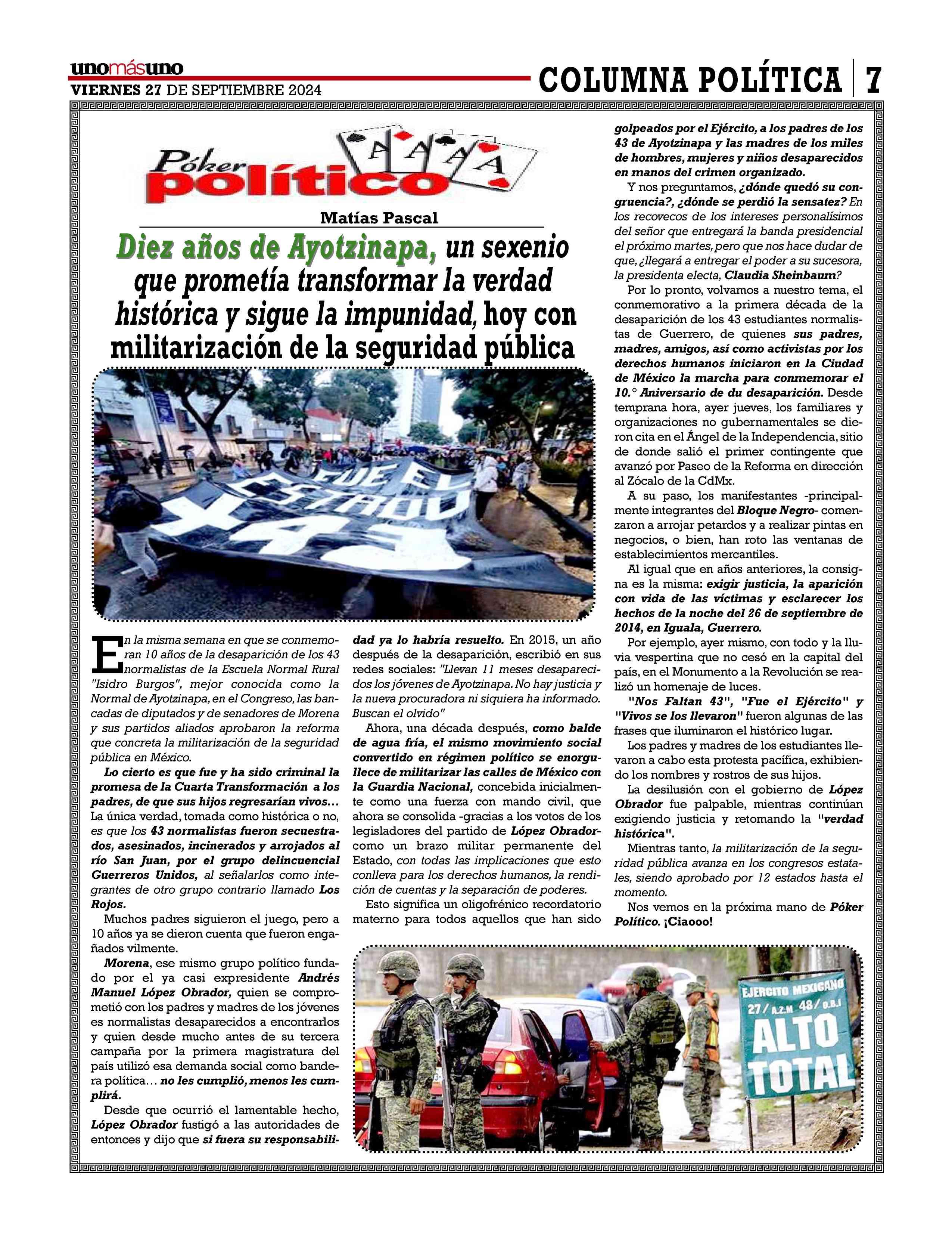 contentos,que necesitamos esa verdad,esa justiciaquenonosllegó enestesexenioyque se va manchado porque a nosotros nos deja esaherida,todavíaquesangra", agregóenun mensaje en la Facultad de Filosofía y Letras de la UNAM antes de una marcha del Ángel de la Independencia al Zócalo, que ha sido resguardado con vallas metálicas y bloques de concreto.