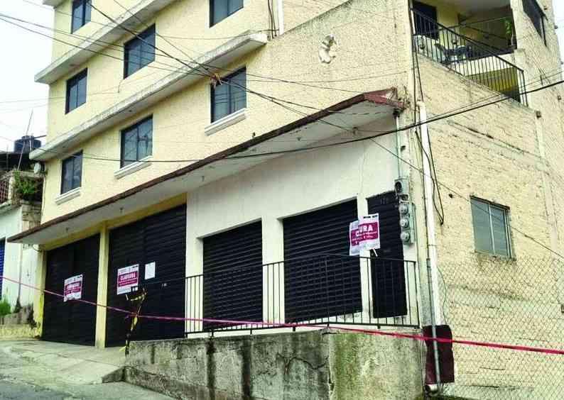 Los vecinos de la parte baja, al lado del edificio desalojaron sus viviendas, son alrededor de 10 casas de familiares de ejidatarios, ello debido al riesgo del colapso que ya es inminente y se