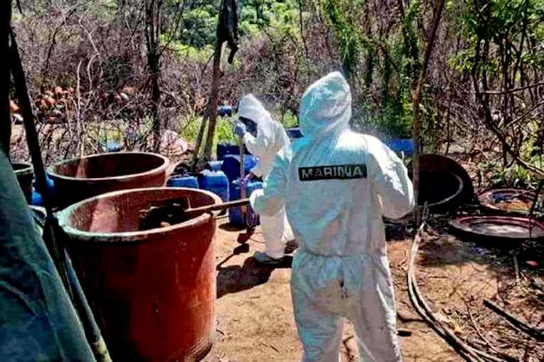 El laboratorio, uno de los más grandes detectados en la región, albergaba: 200 kilogramos de droga terminada, 700 litros de producto en proceso de cocción,3,650 litros y 209 kilogramos de precursores químicos.