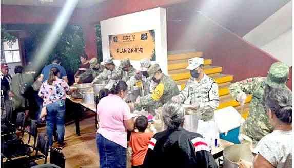 La SecretaríadelaDefensaNacional informó que personal del Ejército,Fuerza Aérea y Guardia Nacional,comprometido con el bienestar delas familiasmexicanas y con motivo de las afectaciones por el paso del huracán "Milton", activaron los planes DN-III-E y GN-A, en su fase de auxilio en los estados de Campeche, Quintana Roo yYucatán. Para brindar apoyo a los habitantes de las áreas que fueron afectadas, se encuentra desplegada una fuerza conformada por 2,841 militares del Ejército yFuerza Aérea y 2,450agentesdelaGuardiaNacional El personal militar y de la Guardia Nacional establecieron cuatro CentrosCoordinadoresdePlanDN-III-Ey GN-A en referidos estados; de igual manera, están en constante comunicación con las autoridades de los tres órdenes de gobierno, realizando juntas de coordinación e intercambio de información, actividades de perifoneo, recorridosen laszonasde riesgoparala evacuación de personas,despejes de caminos ycarreteras,ademásde laactivación de 142 albergues y refugios temporales. Asimismo, se tiene disponible una cocina comunitaria con capacidad para preparar conjuntamente 2,500 raciones calientes diarias, cuatro plantas potabilizadoras con capaci-