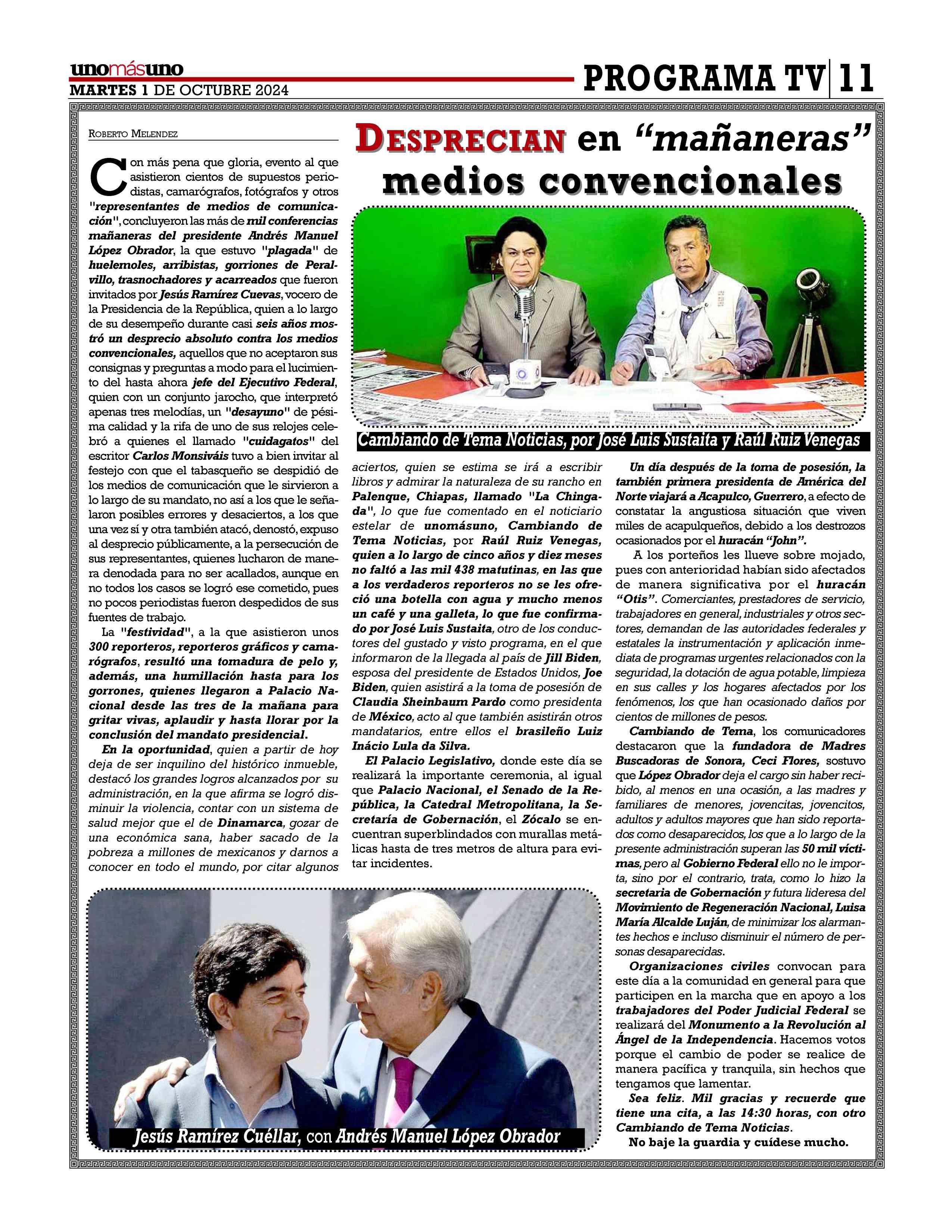 JJESÚS ESÚS R RAMÍREZ AMÍREZ C CUEVAS UEVAS,, VOCERO VOCERO DE DE PRESIDENCIA PRESIDENCIA Desde luego que el artífice de todoloanteriorselodebemosal ahora exvocero de Presidencia, JesúsRamírezCuevas, pues este personaje fue el encargado de sancionar,coartaralosperiodistas que efectuaban preguntas incómodas al presidente, muchos casos de estos se conocieron donde los periodistas no pudieron ingresar a las conferencias pormeses,peroalmismotiempo un secreto a voces fue el que Ramírez Cuevas otorgaba todo tipo de facilidades a los llamadosYouTubers, quienes realizaban preguntas a modo para el lucimiento del Ejecutivo federal.¡Gracias,Jesús,portodastus atenciones!