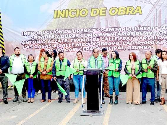 Con el firme propósito de mejorar los servicios básicos y la calidad de vida de las familias ozumbenses, el presidente municipal Ricardo Valencia Valencia,dio el banderazo oficial de inicio de importantes obras de infraestructura hidráulica en la avenida José Antonio Alzate,en su tramo de calle Fray Bartolomé delas Casas,acalleNicolás Bravo en Cabecera Municipal; para que después de 70 años que se realizó la introducción de estas redes deservicios básicos,serenuevelainfraestructura urbana, que no se ve, pero que ayuda demasiado.