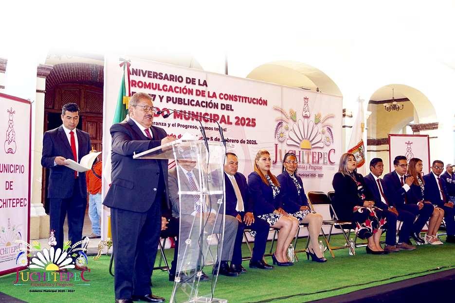 Enlaparticipacióndelalcaldeduranteelacto realizado en la explanada de San Matías Cuijingo, dijo: "Hoy es un día histórico para Juchitepec y Cuijingo, porque por primera vez las normas están a favor del pueblo y no al revés; este esundíadedoblecelebración,primeroporque en 1917 se hizo la promulgación de la Constitución Política de los Estados Unidos Mexicanos, de donde vienen las leyes de todo el país. Para finalizar la Revolución Mexicana, Venustiano Carranza y otros constitucionalistas se dieron a la tarea de construir un documento sólido,y que representara a todos los mexicanos;