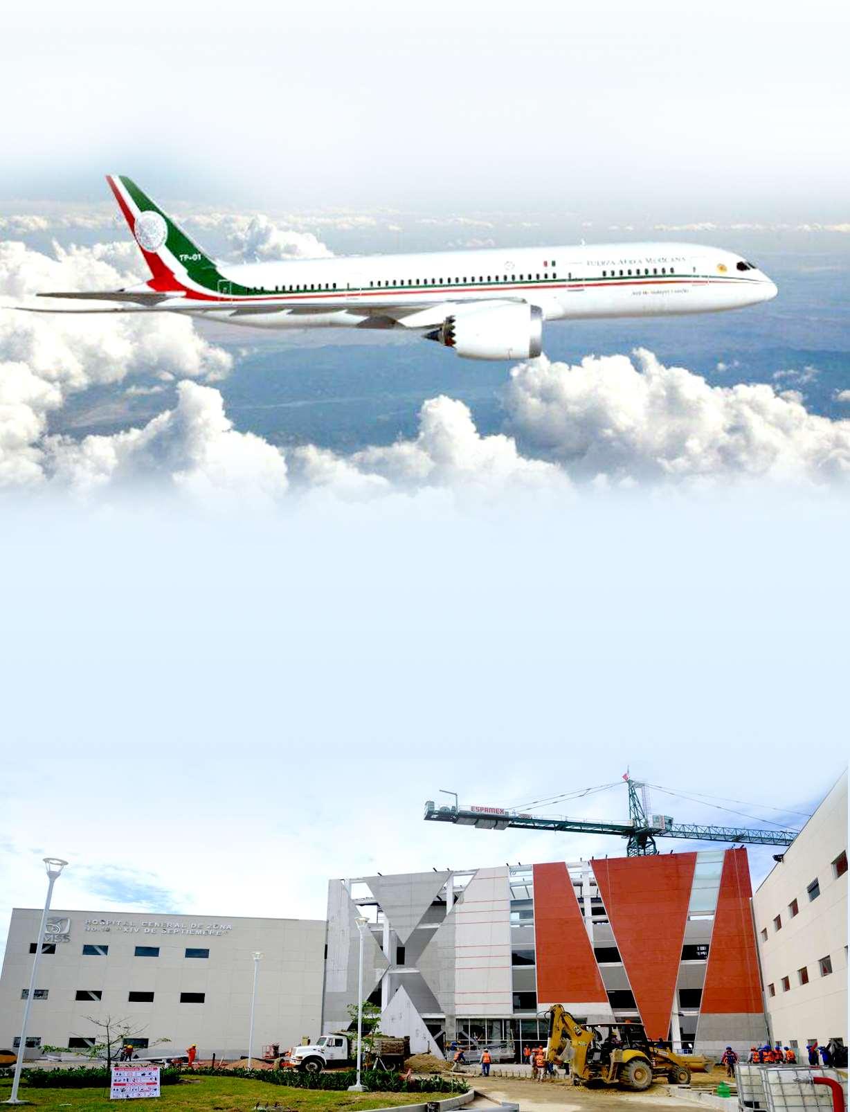 representó 19 % del costo de los hospitales es además sin tomar en cuenta que en 2024 el gobierno aún tenía un adeudo de 2 mil 273 millones de pesos por el avión,de los 6 mil 340 millones que acordó pagar la Defensa Nacional en un arrendamiento por un periodo de 15 años.