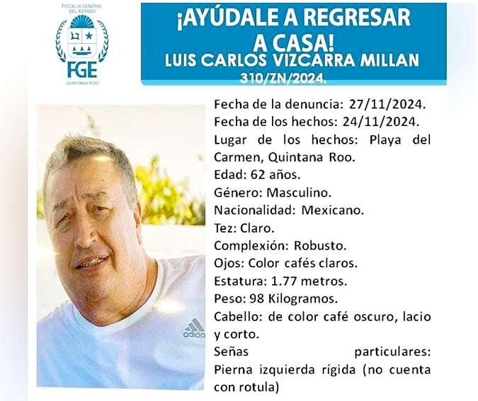 cerca del centro de retención municipal conocido como "El Torito", refiere el acta de denuncia presentada por la familia. Desdeentoncesnosehasabidodelparadero de Luis CarlosVizcarra Millán y su pareja.Por este caso,se integró la carpeta de investigación FGE/QROO/CAN/UPD/11/373/2024, conocida como el "casopetrolero".