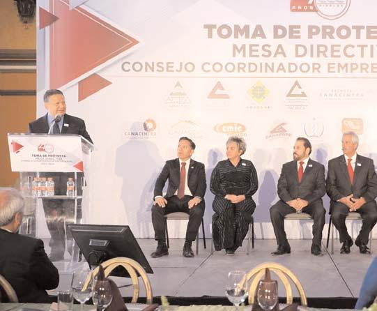 Al tomar protesta a los nuevos integrantes de la mesa directiva del Consejo Coordinador Empresarial de Hidalgo