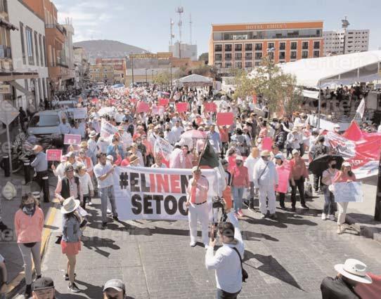 el grito de "El INE no se toca,mi voto no se toca", cerca de 3 mil personas vestidas en su mayoría de blanco o rosa, salieron a las calles de la ciudad de Pachuca para exigir a la Suprema Corte de Justicia de la Nación (SCJN) frenar las reformas electorales del llamado