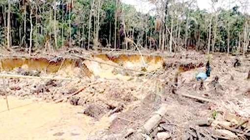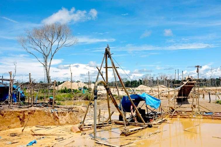 bloques de madera que sostienen el yacimiento para la extracción de oro, impidiendo que los mineros pudieran salir.
