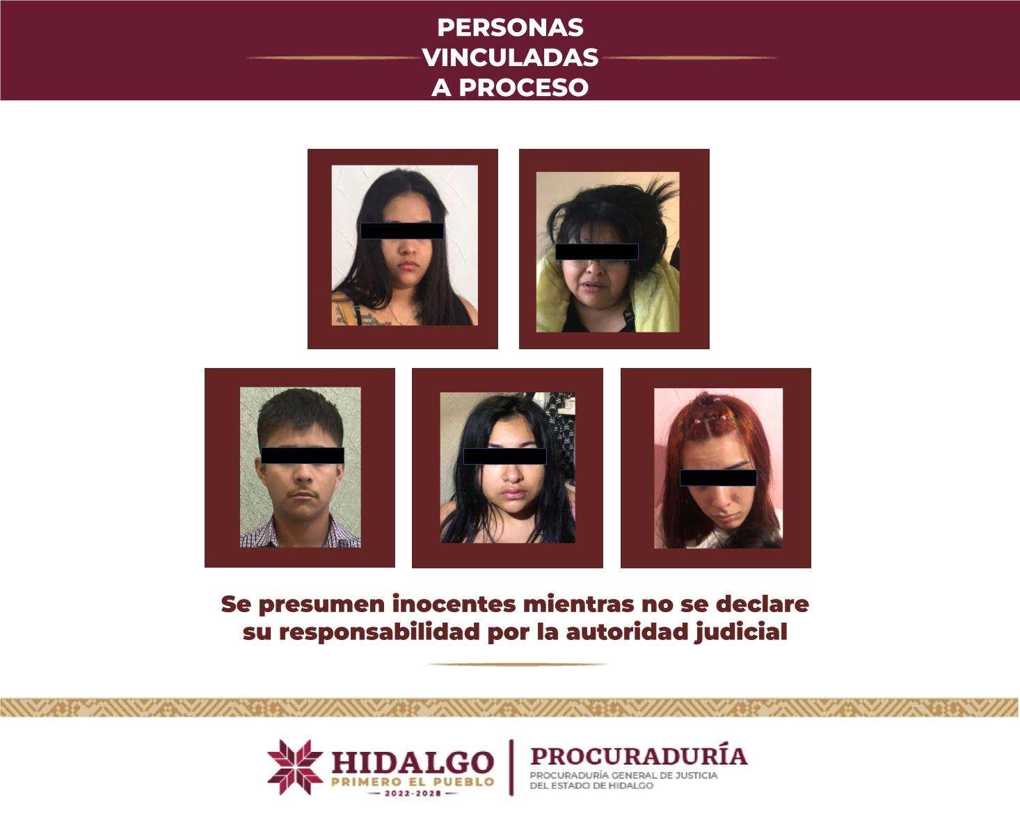 lizadasporpersonalministerial delaUnidaddeInvestigación deDelitosdeHomicidiosDolososyNarcomenudeo,delaProcuraduríaGeneral deJusticiadeHidalgo(PGJEH),seobtuvodelaautoridadjudicialautodevinculaciónaprocesoparacincopersonas investigadasporlosiguiente: