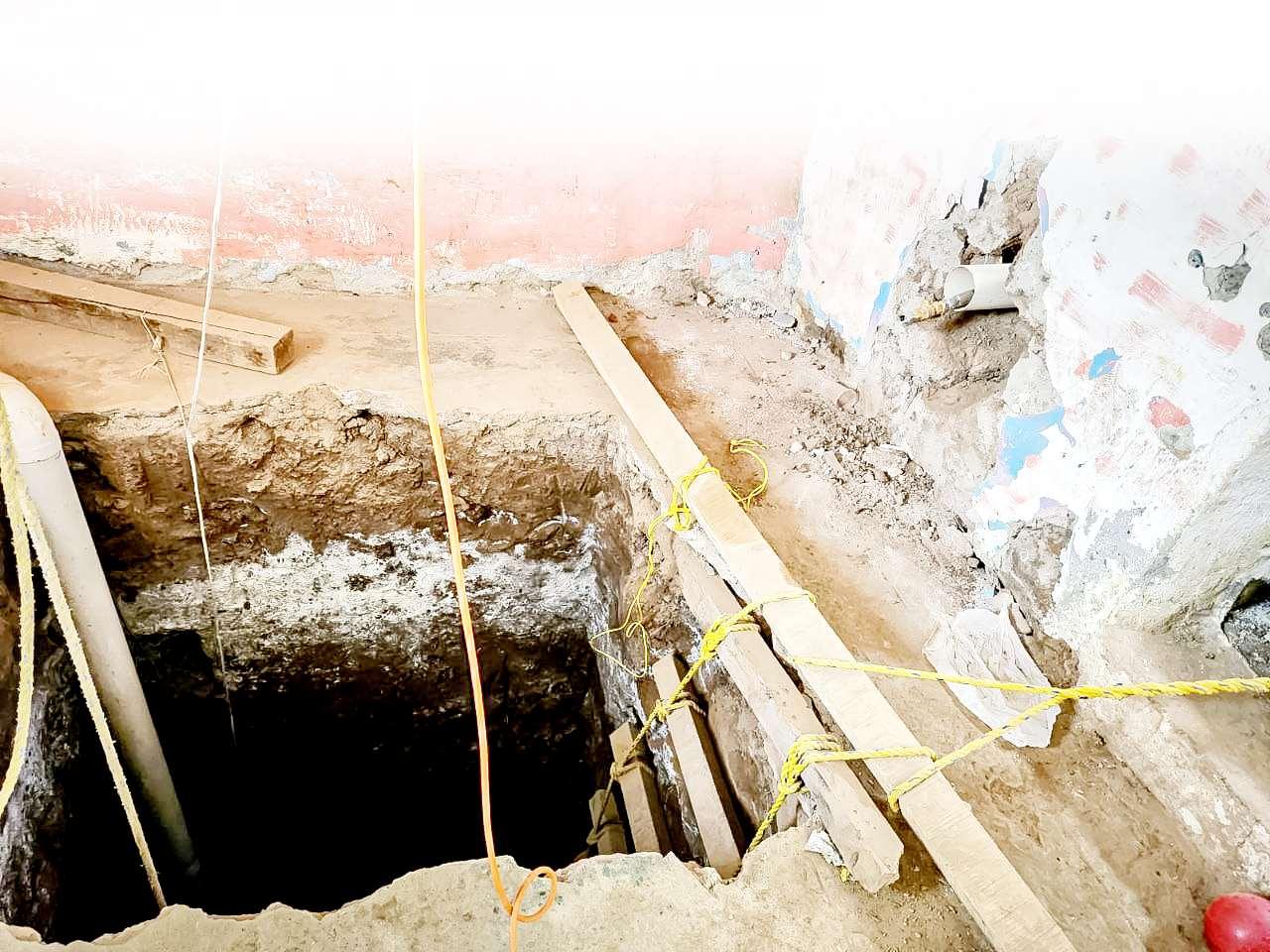 Resultado de las indagatorias, las autoridades en materia de seguridad y justicia desarrollaron el despliegue policial en un domicilio de la colonia Francisco I. Madero, del municipio de Cuautepec de Hinojosa, en donde se halló un túnel de aproximadamente nueve metros de profundidad y 28 de longitud,conectadoa unducto.