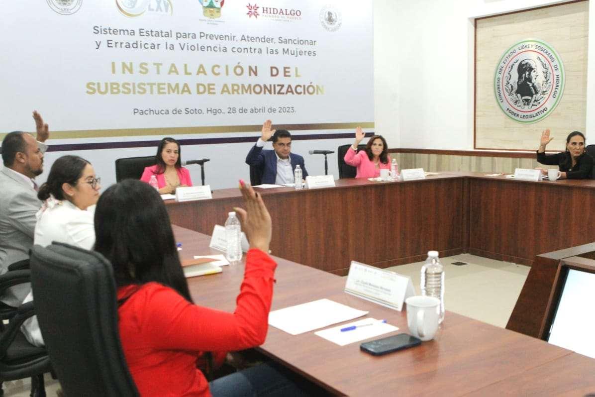 elCongresodeHidalgo,fueinstado el Subsistema de Armoniación del Sistema Estatal para Atender,Sancionar yErradicarla contra las Mujeres; lo anterior cumplimiento a la Ley de Acceso ujeres a una Vida Libre de Violaentidad.