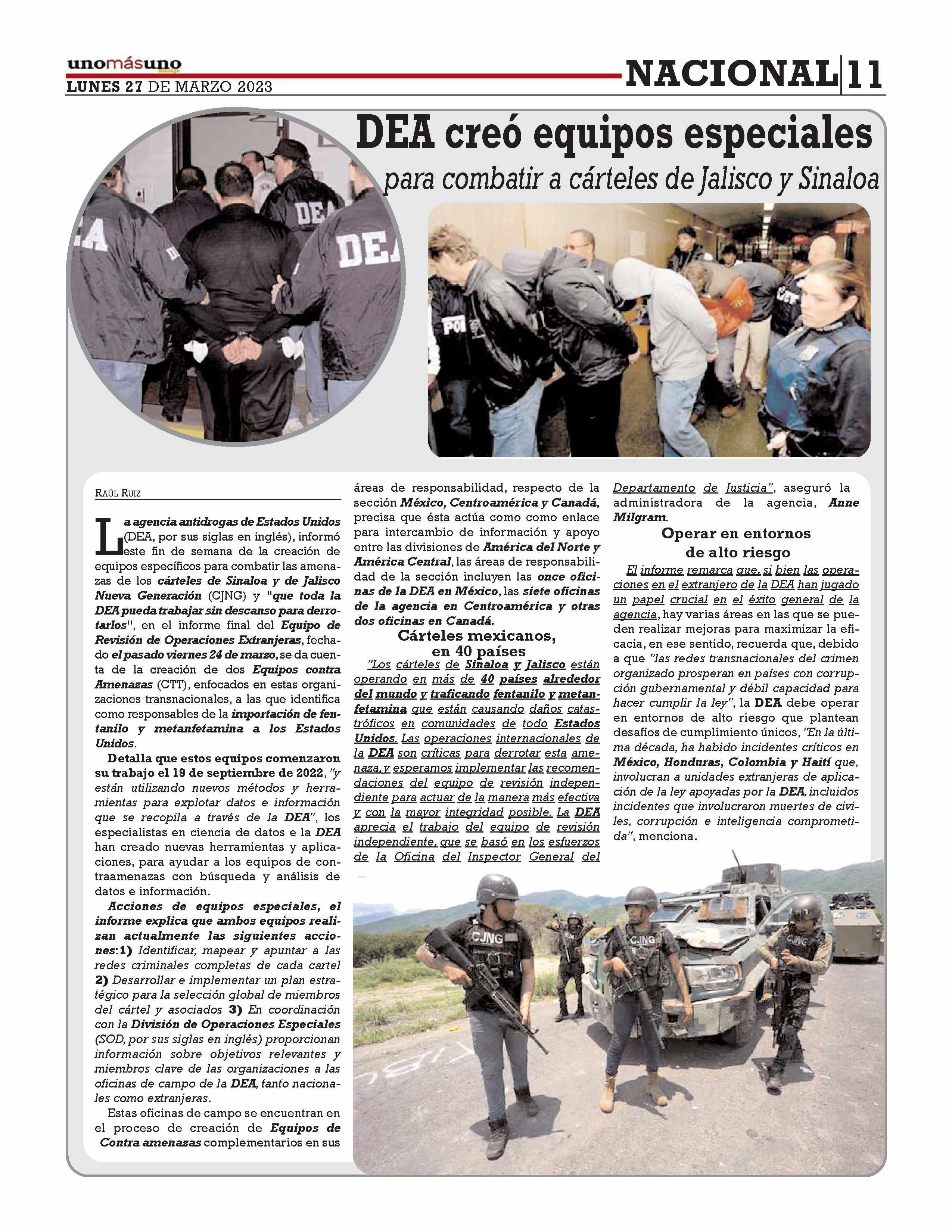 Año XVII - Número 5548 Lunes 27 de marzo de 2023 UNOMÁSUNO HIDALGO una publicación diaria,editada y distribuida por Arrendadora Multiusos, S.A.de C.V. Maquilada por Kakar Impresores, S.A.de C.V., en talleres de Gabino Barreda 86 bis.Col.San Rafael,Ciudad de México,C.P. 06470,Delegación Cuauhtémoc