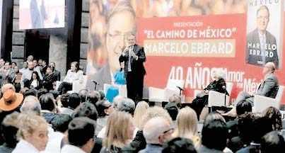 Con gritos de "¡presidente!,¡presidente!", el canciller Marcelo Ebrard pre sentó en Palacio de Minería su libro autobiográfico El camino de México, donde estuvo acompañado por la escritora Elena Poniatowska;la abogada Leticia Bonifaz,el periodista Ricardo Raphael,y la exembajadora Rosalinda Bueso,esposa del secretario.