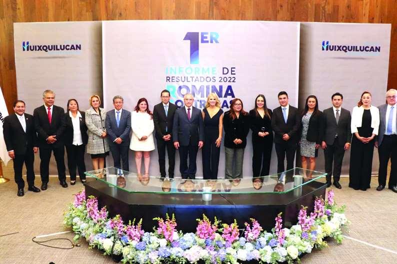 Al rendir su Primer Informe de Re-sultados y reconocer a los servidores públicos por la labor que realizan todos los días, la presidenta municipal, Romina Contreras Carrasco, convocó al Cabildo y a todos lossectores dela sociedad para quecontinúen trabajando unidos y Huixquilucan siga avanzando con resultados que están a la vista de los ciudadanos y, de esta manera, se mantenga como un municipio seguro, tranquilo, en paz y en la vía de la continuidad y el desarrollo. En Sesión Solemne de Cabildo, donde estuvo acompañada por el coordinador del Grupo Parlamentario del Partido Acción Nacional (PAN) en el Estado deMéxico,EnriqueVargas del Villar; así como del comisionado en la Región X Naucalpan, Pablo Basáñez García, Romina Contreras detalló los avances que ha tenido la administración 2022-2024 durante el primer año de gestión, la cual ha cumplido, hasta ahora, con el 70 por ciento de los compromisoshechosen campaña y que han llevadoasugobierno asercalificadocomoelmejor de todo el país,en seis ocasiones,y del Estado de México, por 12 meses, además de contar con el mayor nivel de confianza ciudadana. "Éste no es el trabajo de una sola persona, sino de todo un equipo formado por 4 mil 352 servidores públicos.Huixquilucan es punta de lanza y un referente nacional. Soy la primera mujer en gobernar este municipio y aquí les aseguro que no será la última. Dejaré un precedente de un trabajo de excelencia, con metas y objetivos cumplidos, mejorando día a día la calidad de vida de los huixquiluquenses",subrayó.