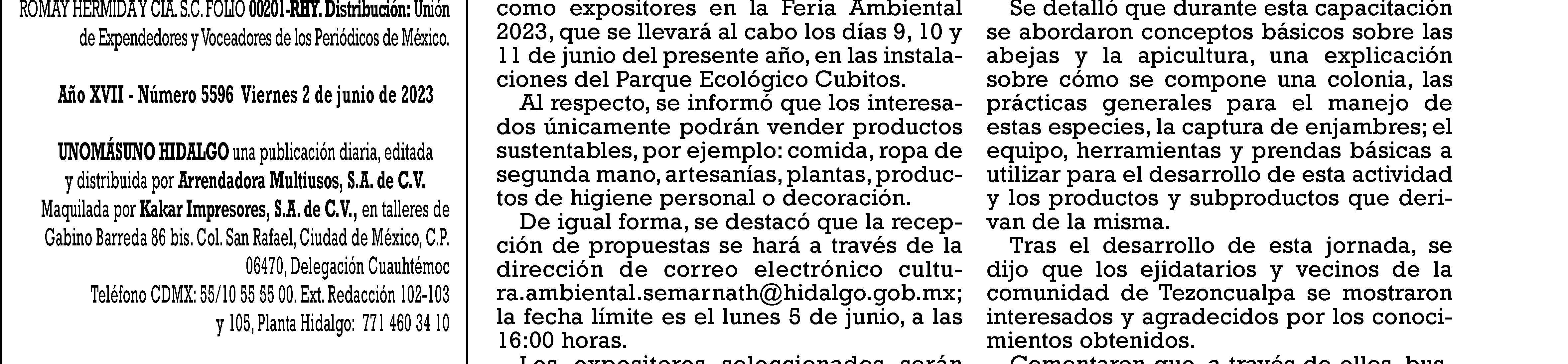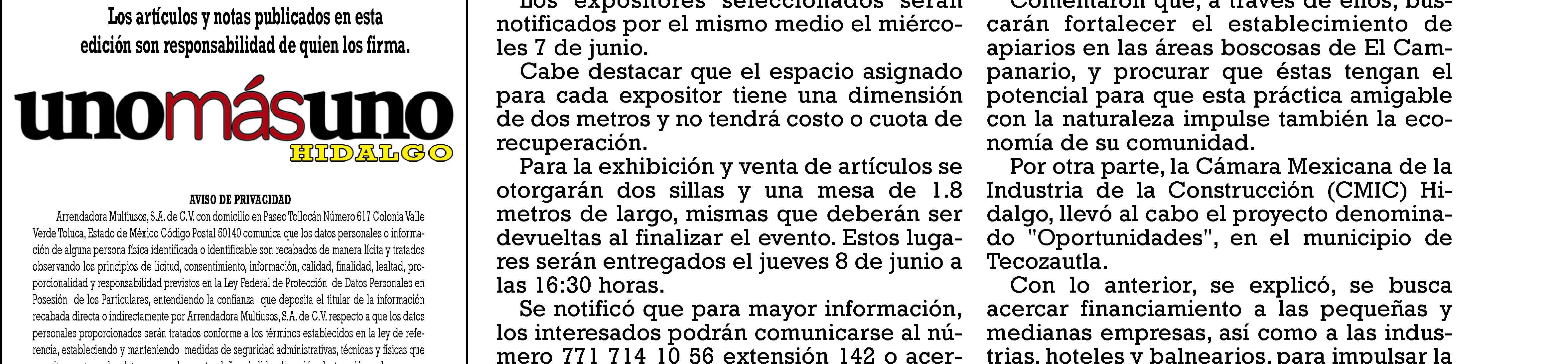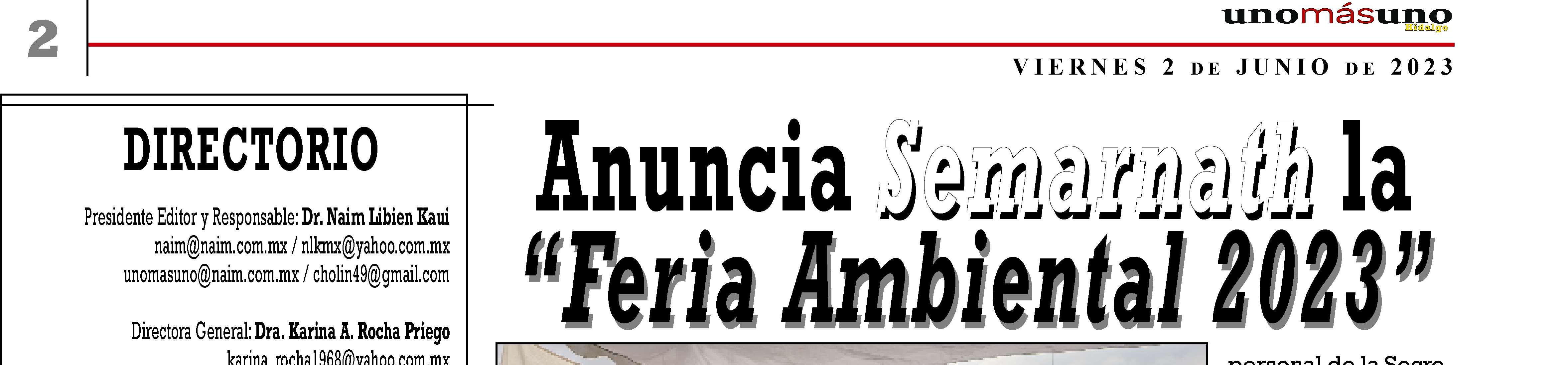 @unomasunohgo Dir.General:KarinaAdrianaRochaPriego PresidenteEditor:NaimLibienKaui Pesos www.unomasunohidalgo.mx unomasunohidalgo.com.mx AÑOXVI:NÚMERO5596 Viernes2de junio2023 Canal145deTotalplay