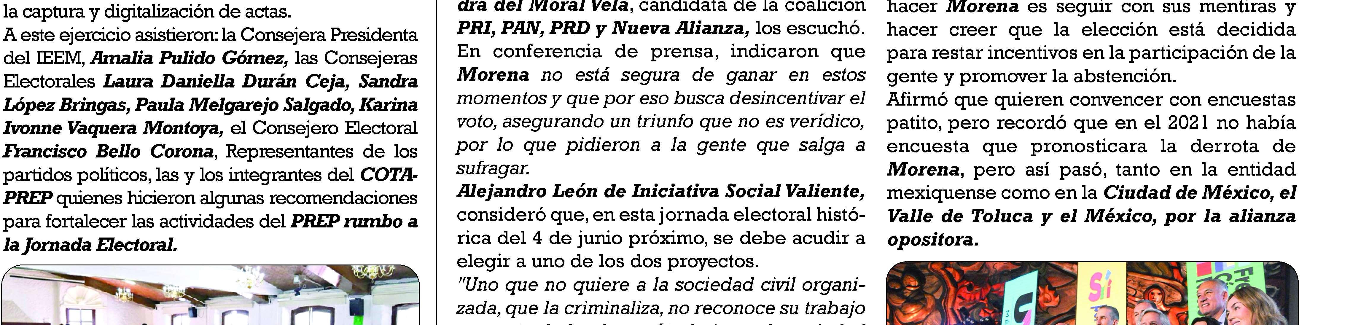 De cara a la elección del próximo domingo, jandra Del Moral Vela, candidata de la coalición el Estado de México, que llegó la hora de la batalla final, llegó la hora de ver quién es quién en las urnas, vamos a ver de qué cuero salen más correas, ganando la gubernatura mexiquense.