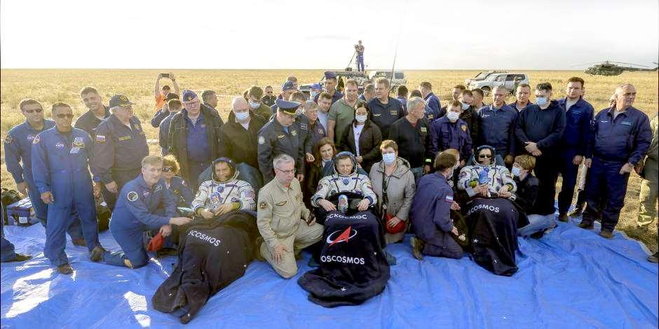 El trío aterrizó en una remota zona de Kazajstán, a bordo de una cápsula Soyuz que fue enviada de reemplazo después de que la nave original fuera alcanzada por basura espacial y perdiera todo su refrigerante mientras estaba acoplada a la Estación Espacial Internacional.