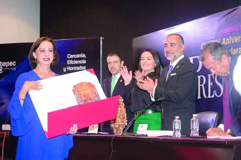 En el marco del 174 aniversario del nombramiento de Villa de Metepec, ciudadanos distinguidos por su aportación a la sociedad, recibieron la Presea 2022 del alcalde Fernando Flores Fernández e integrantes del cuerpo edilicio. En la segunda sesión solemne de Cabildo, Fernando Flores destacó que esta tierra no podría ser lo que hoy es,sin el trabajo,el talento, la dedicación y el amor que le han puesto los ciudadanos a cada mañana,a cada amanecer "que nos regala esta patria chica que hoy festeja un año más de ser”.