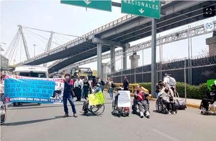 Ayer lunes, 20 personas en silla de ruedas bloquearon la vialidad de acceso a la Terminal 1 del Aeropuerto Internacionalde la Ciudad de México (AICM),en demanda de que les sea aplicada la vacuna NC1.