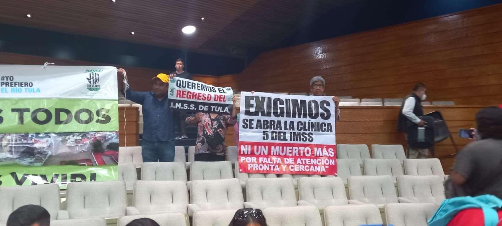 deAllende,mediantepancartas, solicitaronlaintervencióndel Congresolocal,paraqueseabralaclínica5delInstitutoMexicanodelSeguro Social(IMSS)enesaregión.