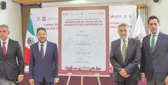 Los Gobiernos del Estado de México,la Ciudad de México y del municipio de Ecatepec firmaron un convenio de coordinación para la reposición de 12 pozos de agua potable del Acueducto Chiconautla, con una inversión de 216 millones de pesos del Fideicomiso 1928,recursos que se tienen considerados en el Plan Integral de Abastecimiento de Agua Potable al Valle de México. Al respecto,el titular de la Comisión del Agua del Estado de México (CAEM),Jorge Joaquín González Bezares, indicó que las obras y acciones acordadas en el seno del grupo de coordinación metropolitano,tienen el propósito de incrementar la disponibilidad de agua potable,fortaleciendo la infraestructura hidráulica del Valle de México.