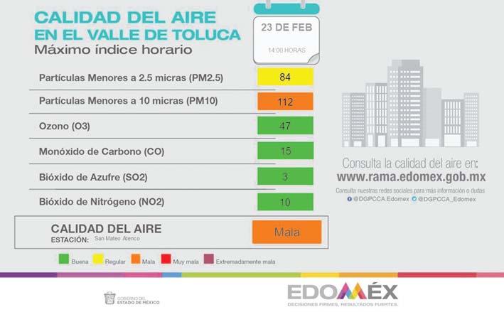 Lo anterior,debido a la alta radiación solar que ha prevalecido durante el día y a la estabilidad atmosférica provocada por el sistema de alta presión que afecta al centro del país.Estas condiciones se combinaron con el viento débil de dirección suroeste dentro del Valle de México, lo que provocó estancamiento de los contaminantes y alta formación del ozono.